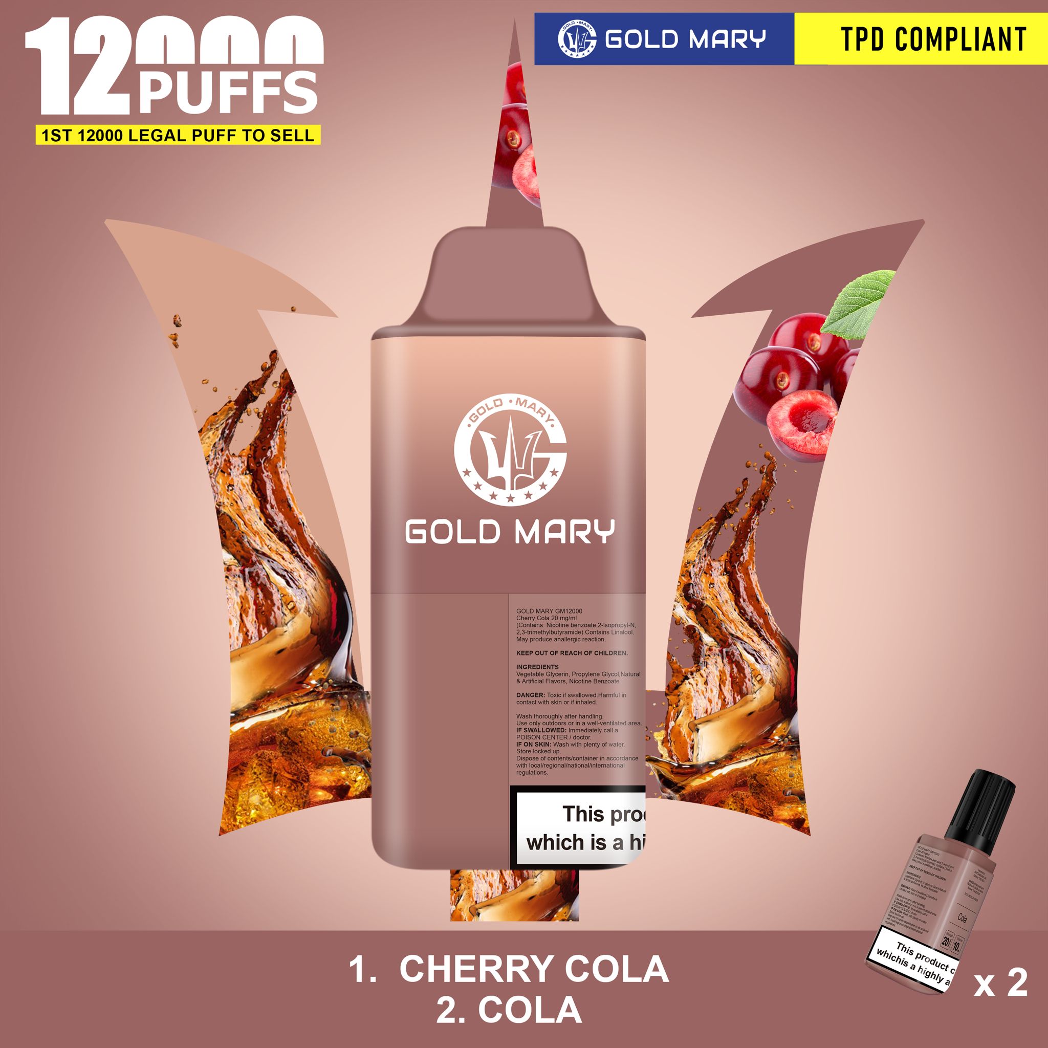 Introducing the Gold Mary 12000 Puffs Disposable Vape Box of 5, renowned for its high-performance capabilities, reliability, and sophistication. This exclusive collection features five high-capacity disposable vapes, each designed to deliver an impressive 12000 puffs per device, ensuring prolonged enjoyment without the hassle of recharging or refills. Packed with premium e-liquid in an array of enticing flavors, these vapes promise smooth and consistent vapor production, powered by cutting-edge coil technology. The robust battery ensures unwavering performance until the very last puff, while the sleek, ergonomic design ensures a comfortable grip and effortless portability. With intuitive inhale activation and no buttons or settings to manage, the Gold Mary disposable vape caters to both newcomers and seasoned vapers seeking unparalleled ease of use. Its leak-proof design and rigorous manufacturing standards ensure a secure and dependable vaping experience. Offering outstanding value with a pack of five vapes, this product represents a cost-effective choice for indulging in superior vaping experiences. Elevate your vaping journey with the Gold Mary 12000 Puffs Disposable Vape Box of 5, delivering unmatched convenience, high performance, and sophistication with every use.